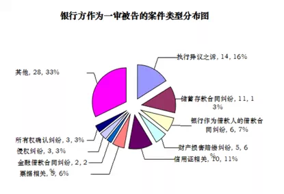(五)银行作为被告的案件类型分布:储蓄存款合同纠纷以及银行作为借款人的借款合同纠纷(或称民间借贷纠纷)值得重视